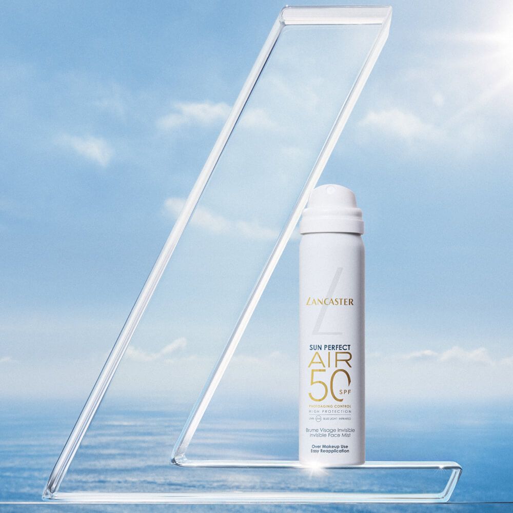 (1) Test consommateur réalisé sur 80 femmes après application de la Brume Visage Invisible SPF50 Sun Perfect Air, deux fois par jour.